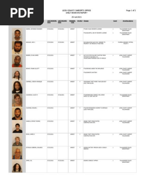 August 24 2012 tallahassee leon county booking report for august 23 2012 attached is a pdf file containing all bookings at the leon county jail from august 23. No claims to the accuracy of this information are made. WCTV - Below is a PDF file containing all bookings at the Leon County Detention Facility from August 12 2021.